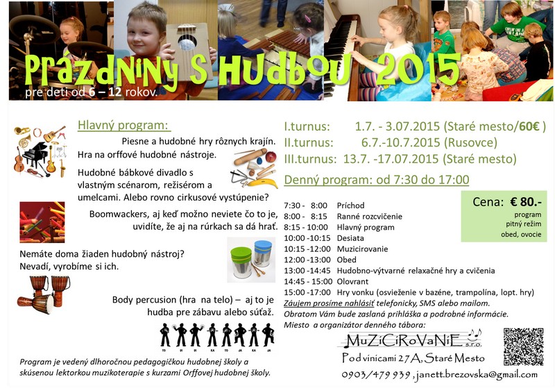 Organizačné pokyny k prihláseniu na denný tábor Hudobné prázdniny 2015.